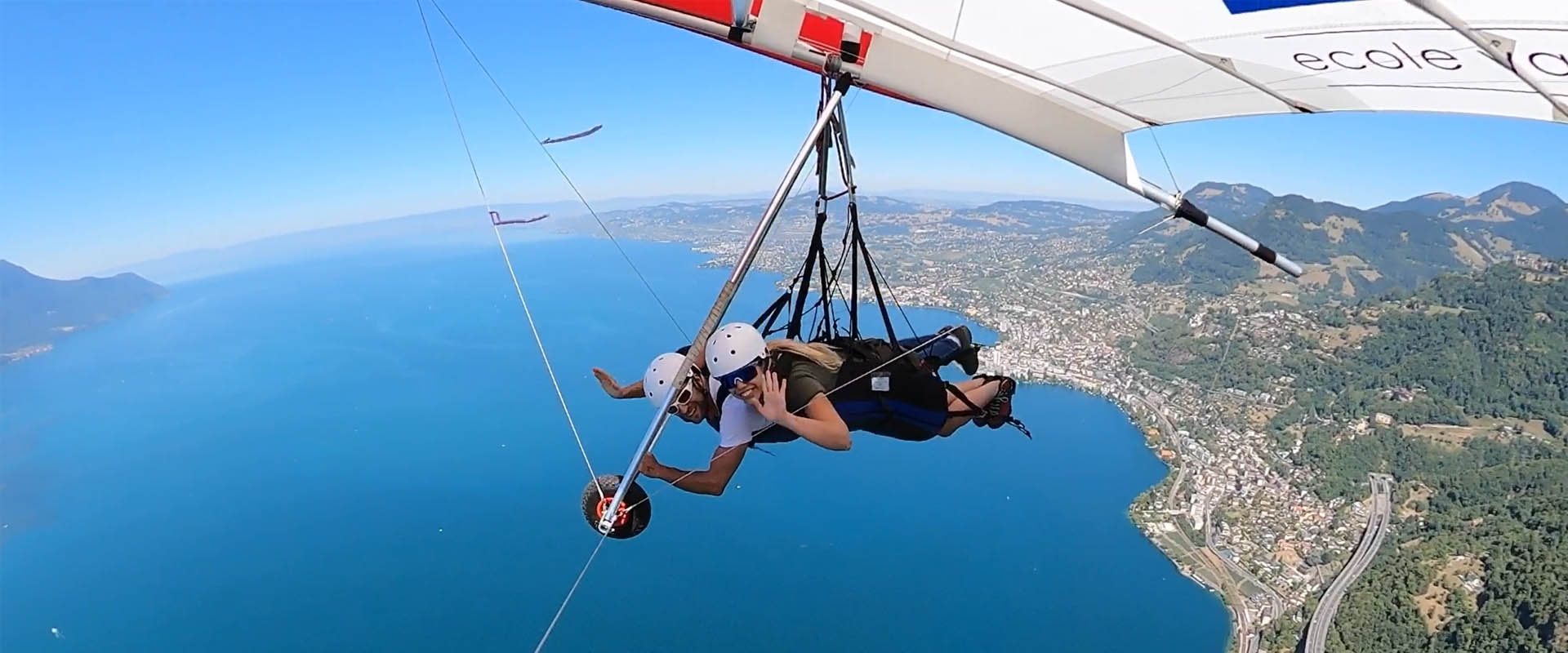 Réaliser un baptême de l’air en deltaplane consiste en pratique à voler sous une aile delta avec un pilote professionnel. Vous serez donc harnaché à côté du pilote qui s’occupera du décollage, et de vous emmener pour une balade dans les airs. Vous surplomberez des paysages et une vue à couper le souffle tels que le lac Léman, Montreux et la Riviera, des spots de prédilection pour cette activité. Au bout de 15 min à 20 min de vol, le pilote fera un atterrissage tout en douceur.
